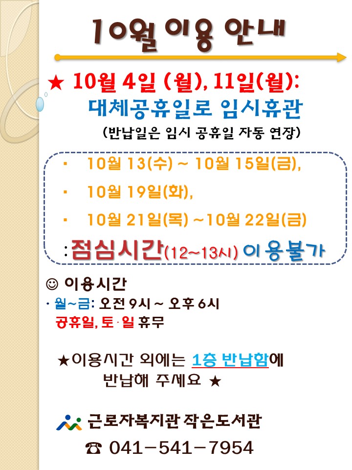 10월 작은도서관 휴관 안내