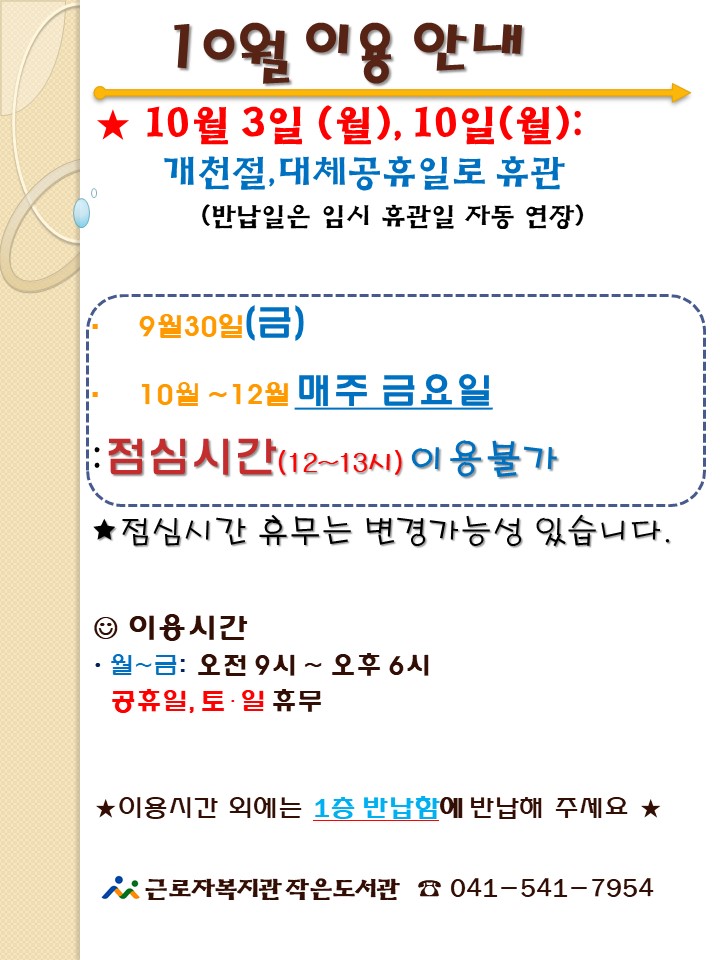 작은도서관 10월 이용안내