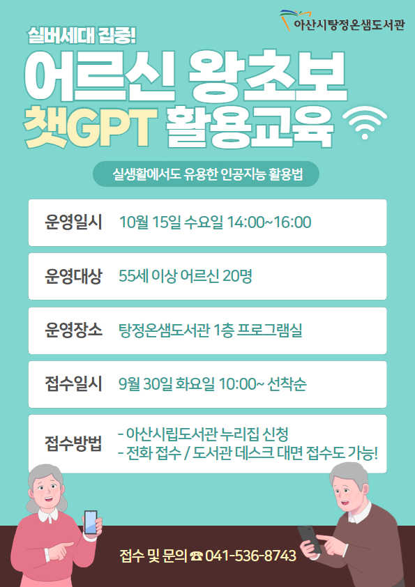 어르신 왕초보 챗GPT 활용 교육(장소: 탕정온샘도서관)