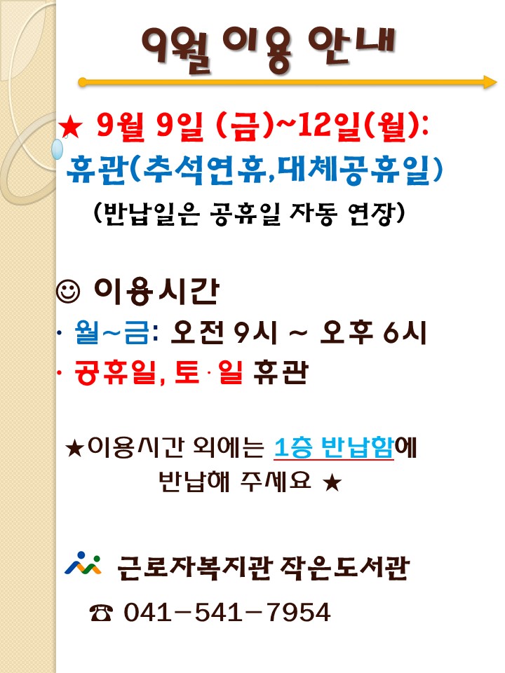 작은도서관 9월 이용안내