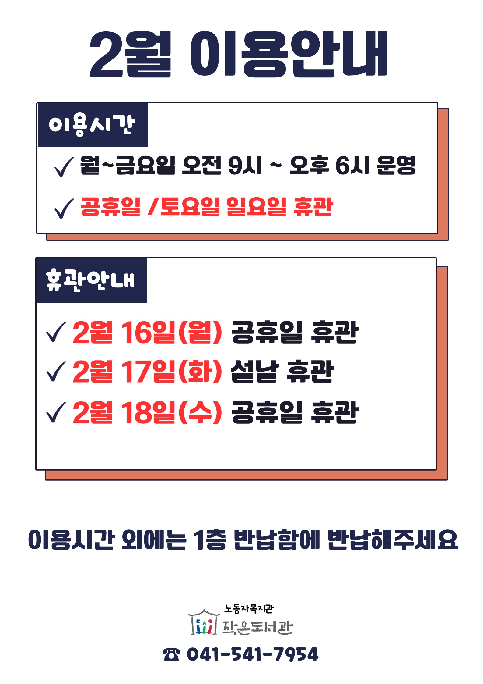 노동자복지관 작은도서관 2월 휴관안내